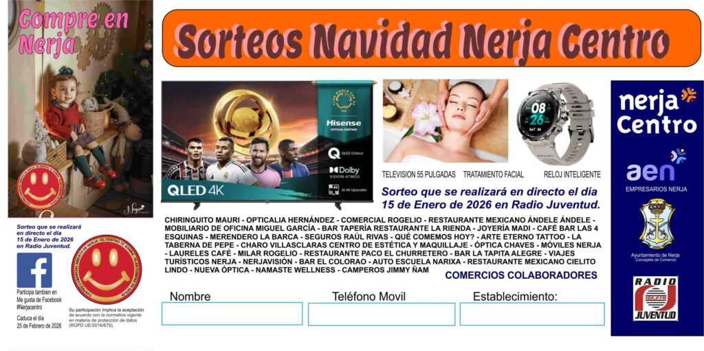 Hoy hemos celebrado en Radio Juventud el SORTEO DE NAVIDAD 2025 NERJA CENTRO, los ganadores son: Patricia L. un TV […]